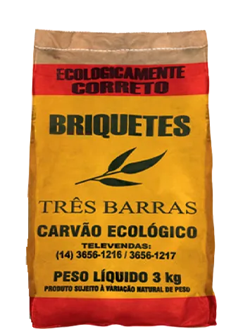 O Carvão Ecológico Briquete Três Barras – 3kg é produzido com resíduos vegetais compactados, oferecendo uma queima mais limpa, uniforme