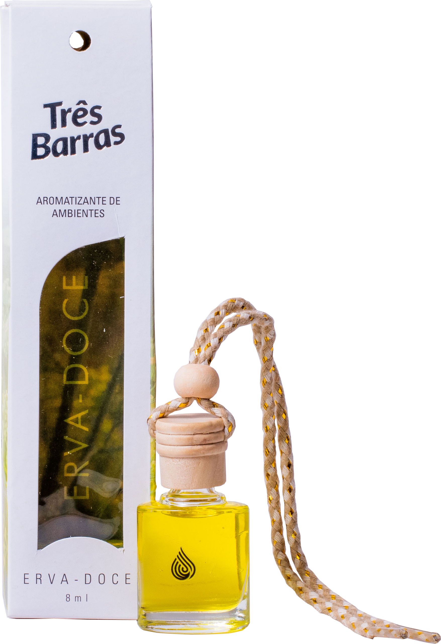 Compacto e eficiente, o Aromatizante Pingente Erva Doce da Três Barras é ideal para pequenos ambientes.
