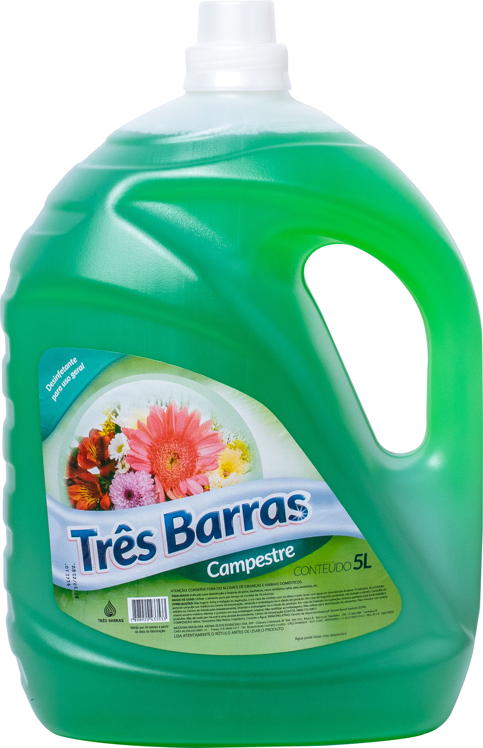 O Desinfetante Campestre 5L Três Barras elimina germes e perfuma com suavidade. Indicado para pisos, banheiros e superfícies laváveis.