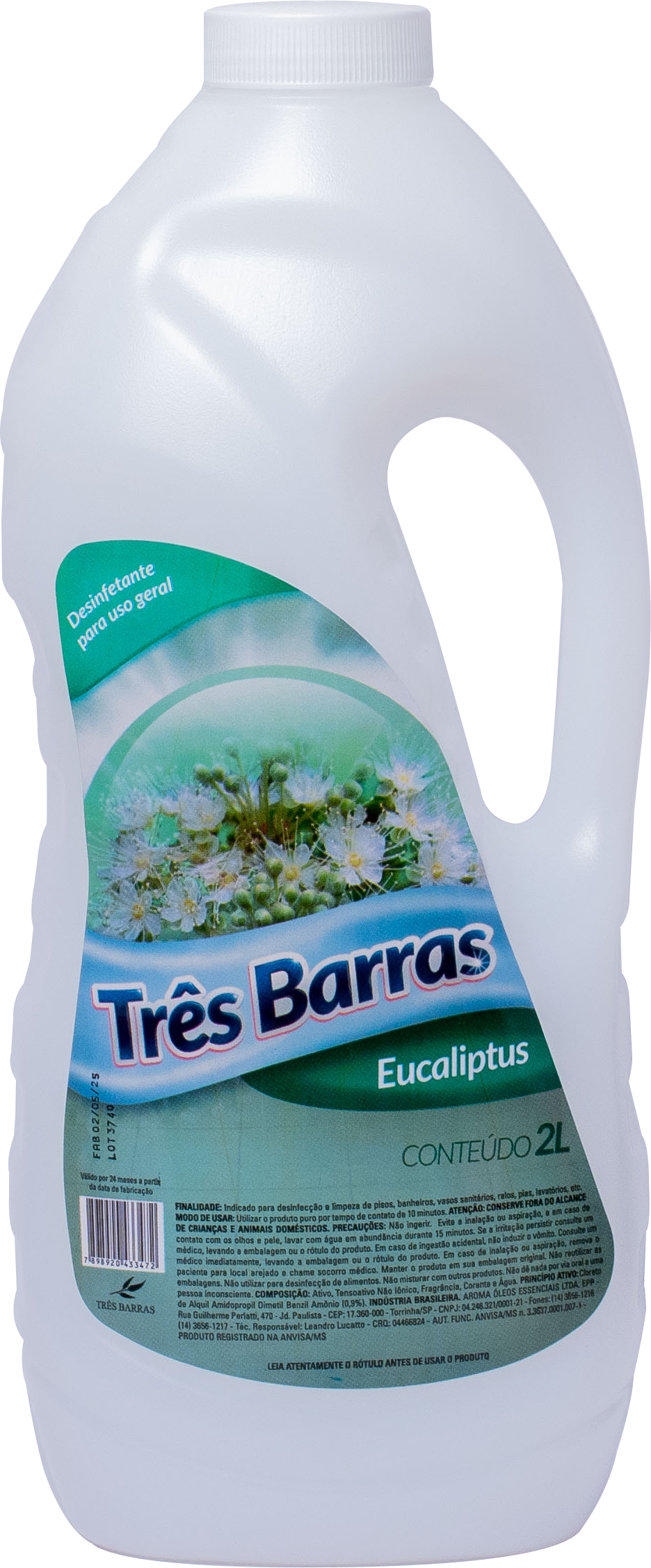 O Desinfetante Eucalipto 2L Três Barras elimina germes e perfuma com suavidade. Indicado para pisos, banheiros e superfícies laváveis.