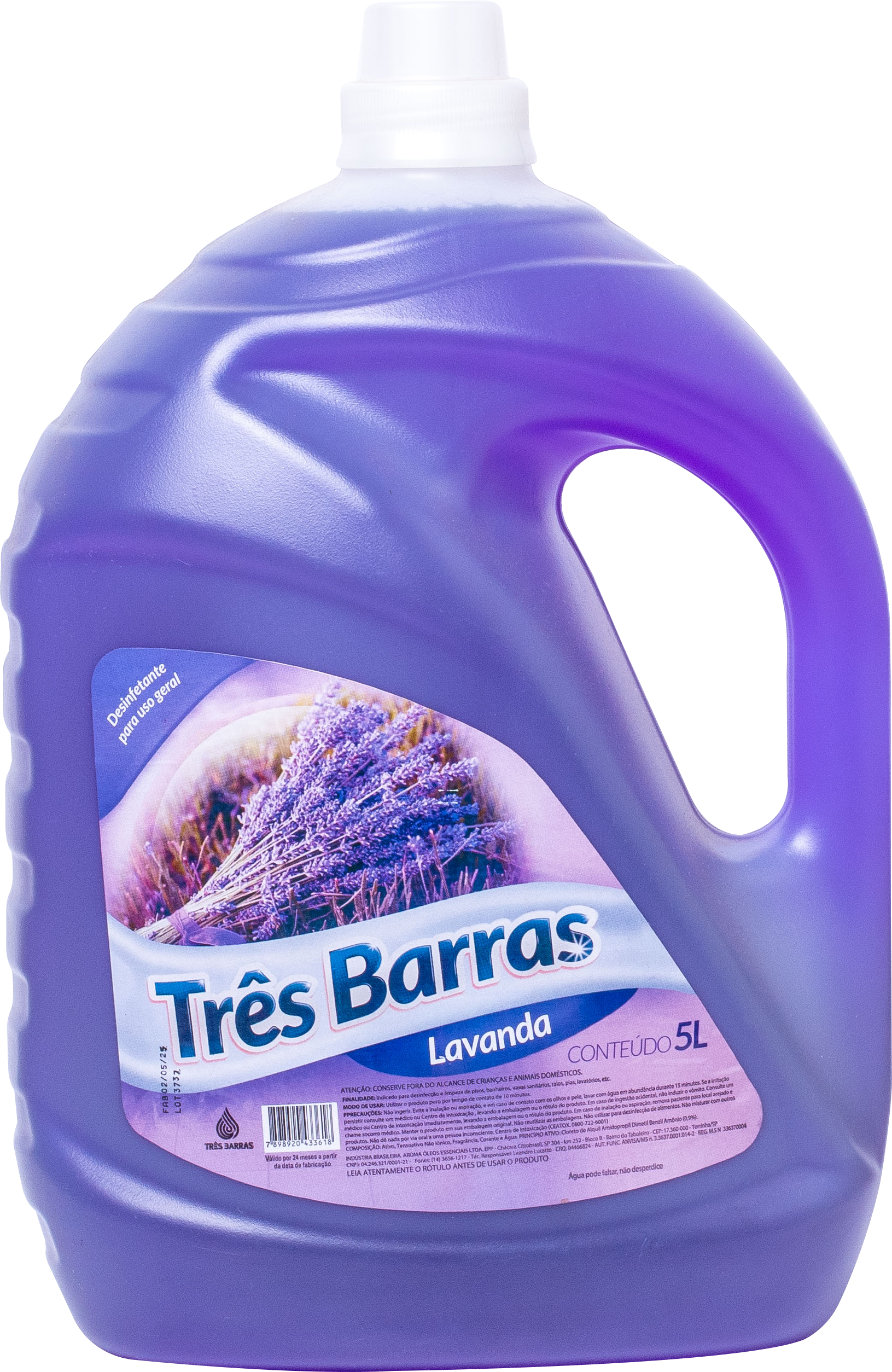 O Desinfetante Lavanda 5L Três Barras elimina germes e perfuma com suavidade. Indicado para pisos, banheiros e superfícies laváveis.
